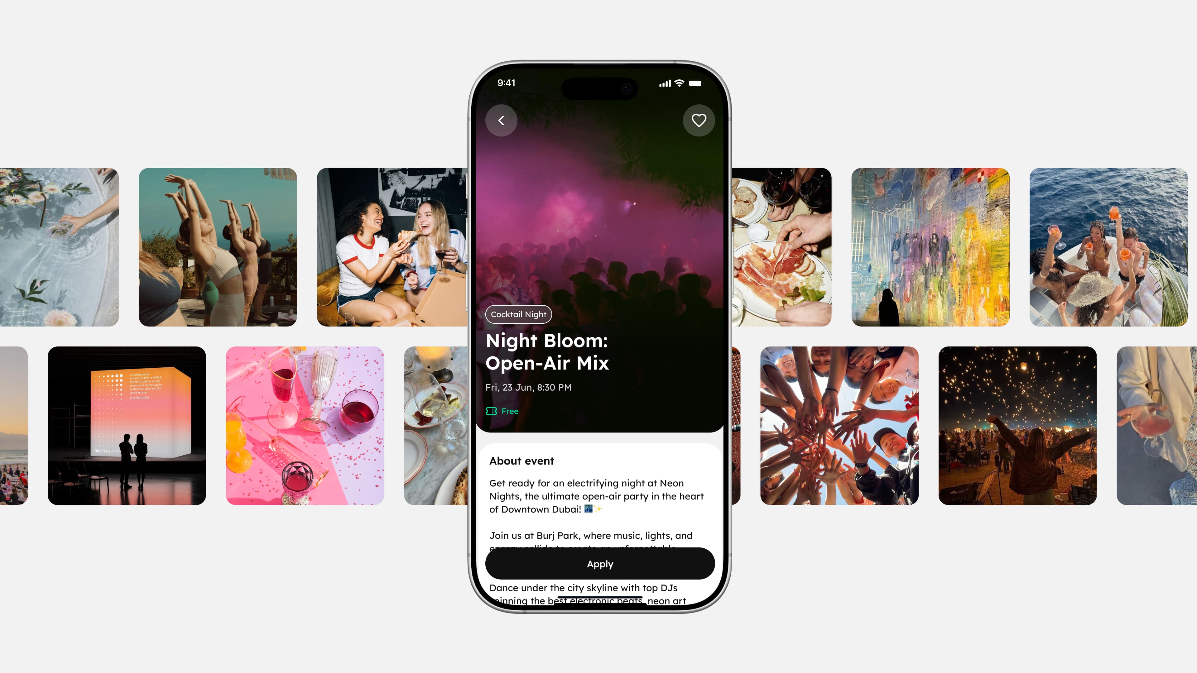 This app brings events and experiences to life, allowing users to effortlessly discover, create, and connect through a vibrant world of local and global gatherings, turning exploration into a seamless and engaging social experience.