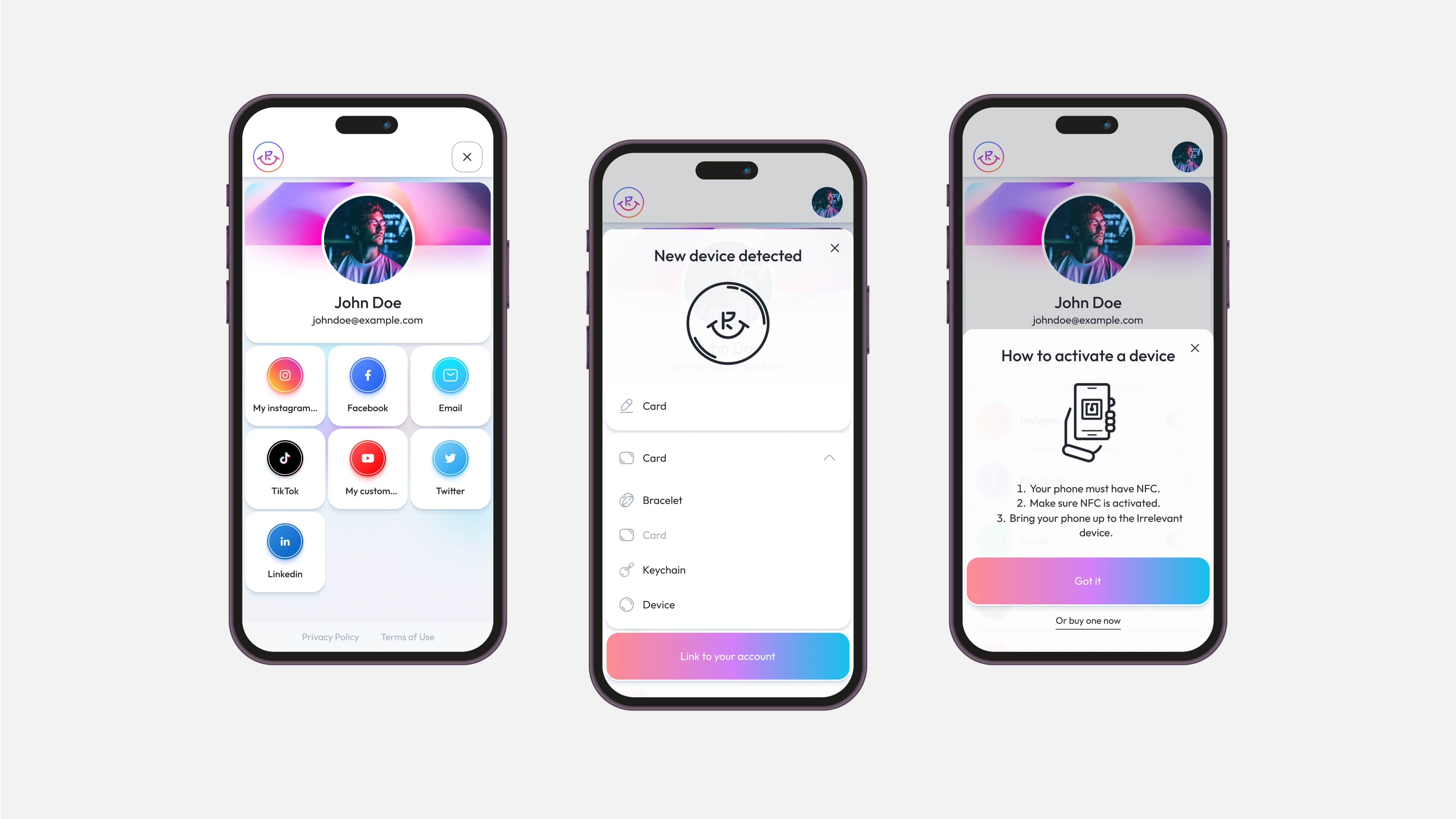 Irrelevant is web application that allows users to add personal information and social media links. Users will be able to share all social network data with other users of Irrelevant NFC chip after adding all data.